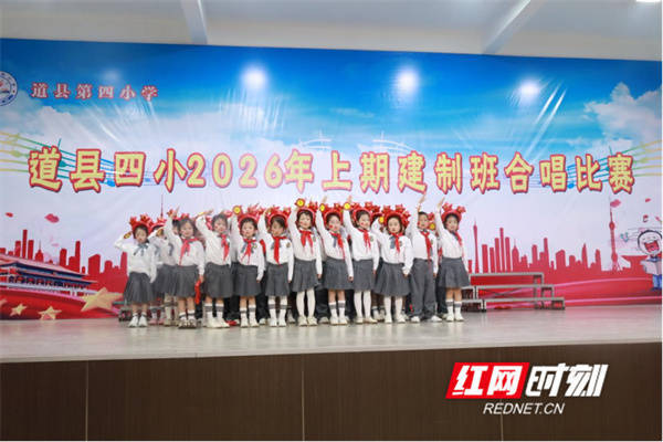 红网时刻新闻3月30日讯(通讯员 朱清玉 唐紫香 熊礼臻)为丰富校园文化生活,提升学生艺术素养,培养团队协作精神与集体荣誉感,传承红色基因、厚植爱国情怀,3月26日至27日,道县第四小学开展2026年“童心向党,歌声飞扬”建制班合唱比赛。本次比赛以班级为单位,1-5年级全体学生参与,分年级赛(走评)和校级赛(舞台赛)两个阶段开展,全程秉持公平、公正、有序的原则,为全校师生呈现了一场精彩的艺术盛宴。